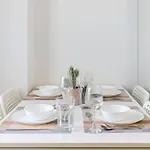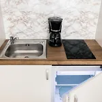 - ❓Bietet das Apartment seinen Gästen eine Küche?Ja, das Apartment ist mit einer kompletten Küche ausgestattet und bietet außerdem einen Wasserkocher, einen Kühlschrank und Glasgeschirr.